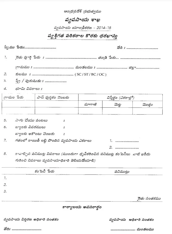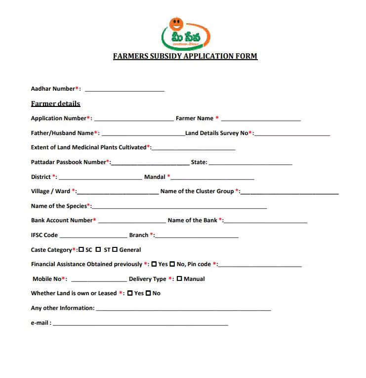 AP Meeseva Farmers Subsidy Application Form PDF